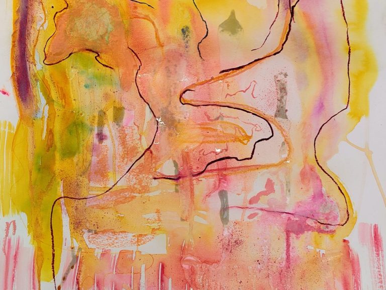 Ik schilder met amandelolie op papier, maak emulsies en giet ze erover heen. Als er een lichtbron achter het papier wordt geplaatst ontstaat er een fascinerend lichtwerk.